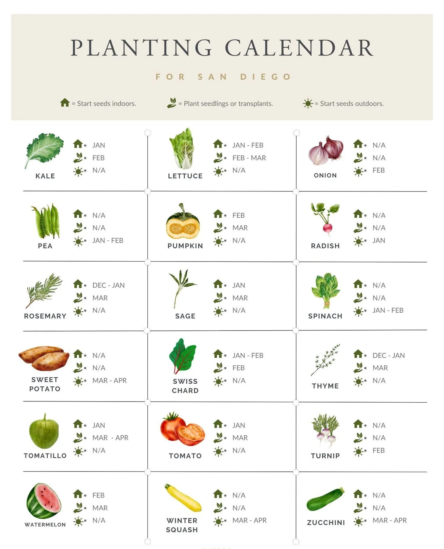 Keep in mind, this is for San Diego! Our coastal desert town provides an ideal environment for growing a variety of fruits, vegetables, herbs and edible flowers. When picking out what to plant in your garden, be sure to select those that thrive in San Diego’s climate. I hope you find joy in growing even the tiniest bit of what you eat.